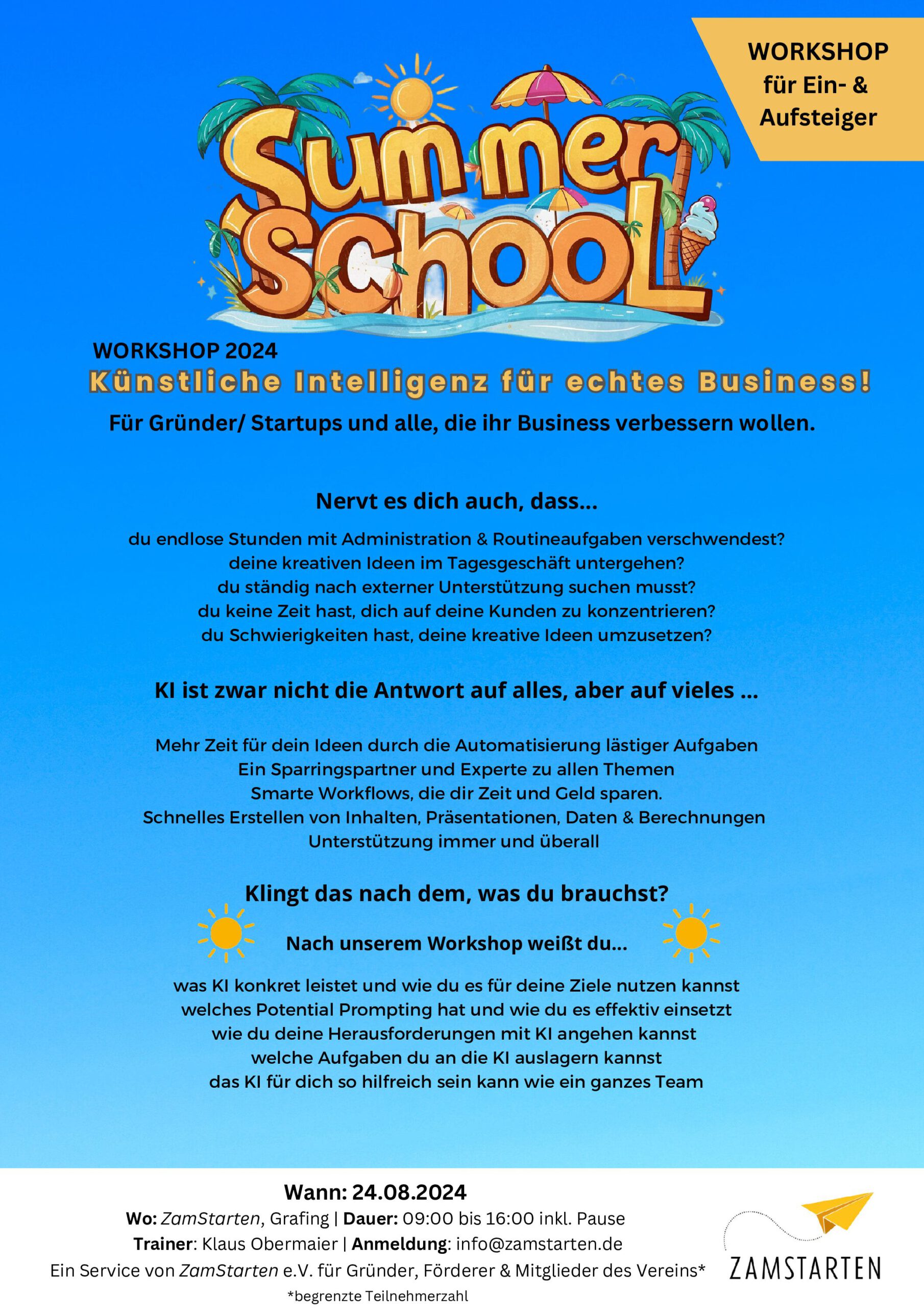 28.09.2024, 09:00-16:00 Uhr im Gründerzentrum Grafing/ZamStarten