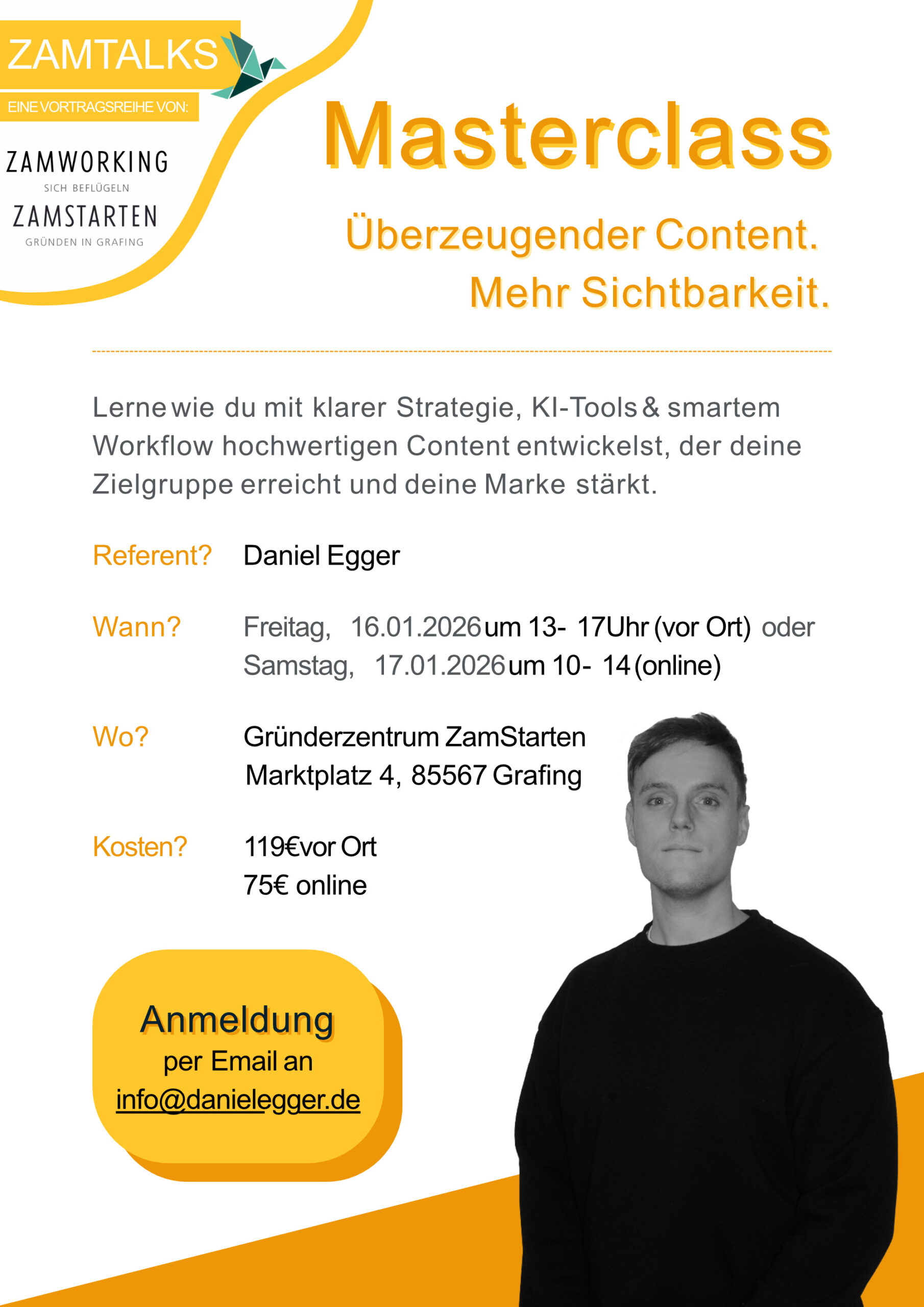 Mehr Infos unter https://zamstarten.de/master-classes/ & Anmeldung per Email an info@danielegger.de