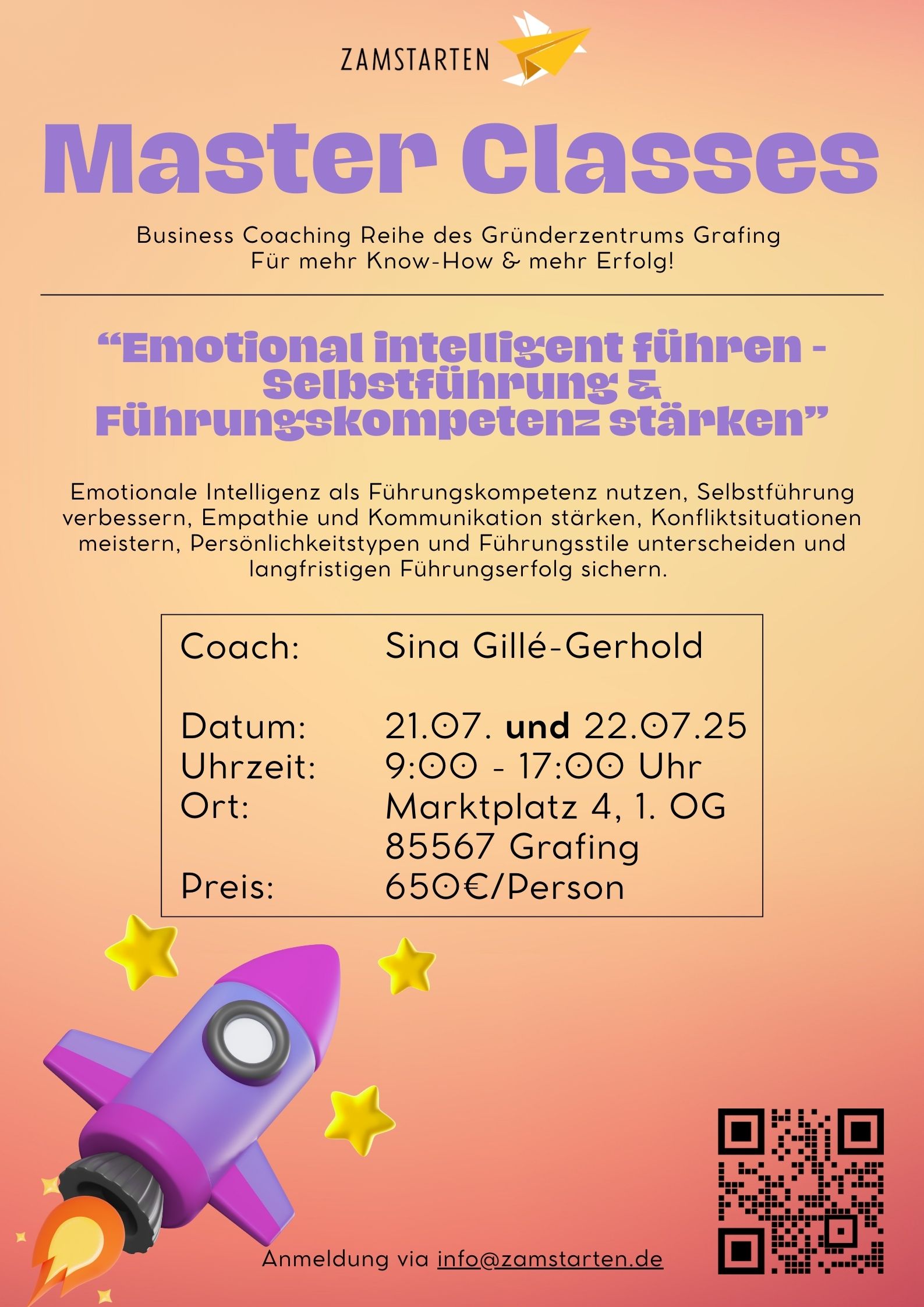 Ort: Zamstarten, Marktplatz 4, Gründerzentrum Raum Jumbo, 85567 Grafing