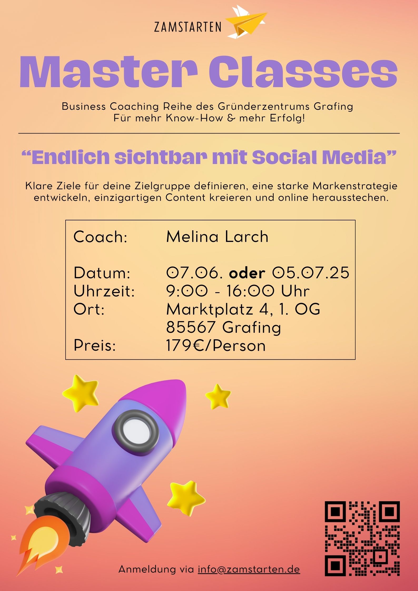 Anmeldung unter info@zamstarten.de