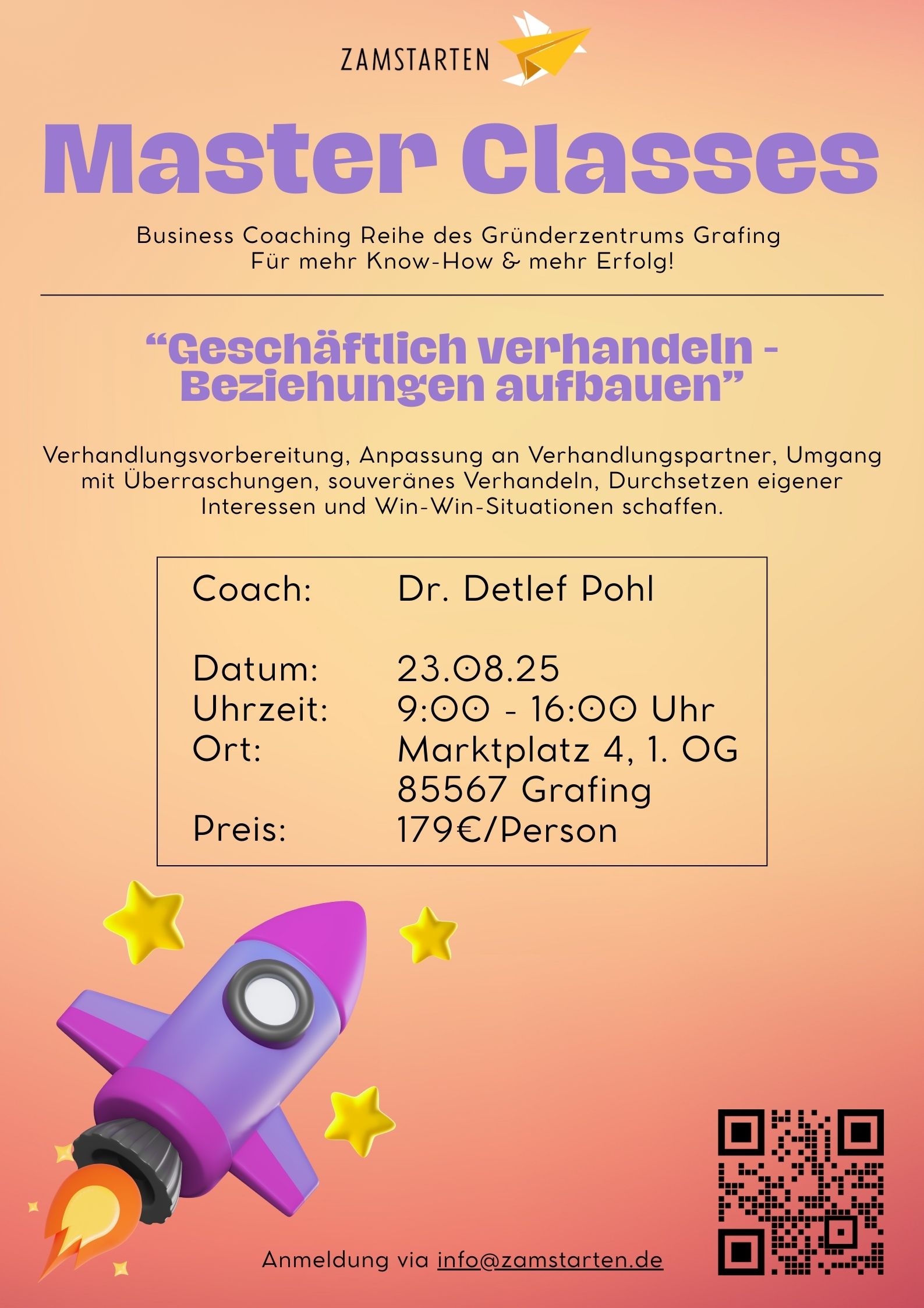 in den Master Classes des Gründerzentrums Grafing ZamStarten können Sie Ihr Know-How vertiefen und den Erfolg Ihres Business verbessern!