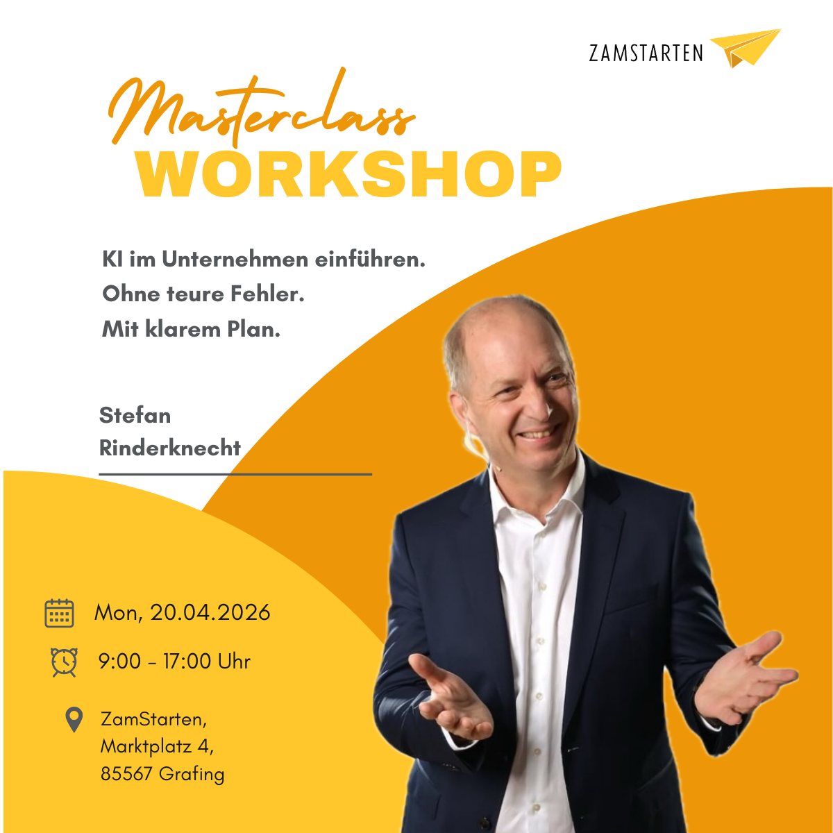 in den Master Classes des Gründerzentrums Grafing ZamStarten können Sie Ihr Know-How vertiefen und den Erfolg Ihres Business verbessern!