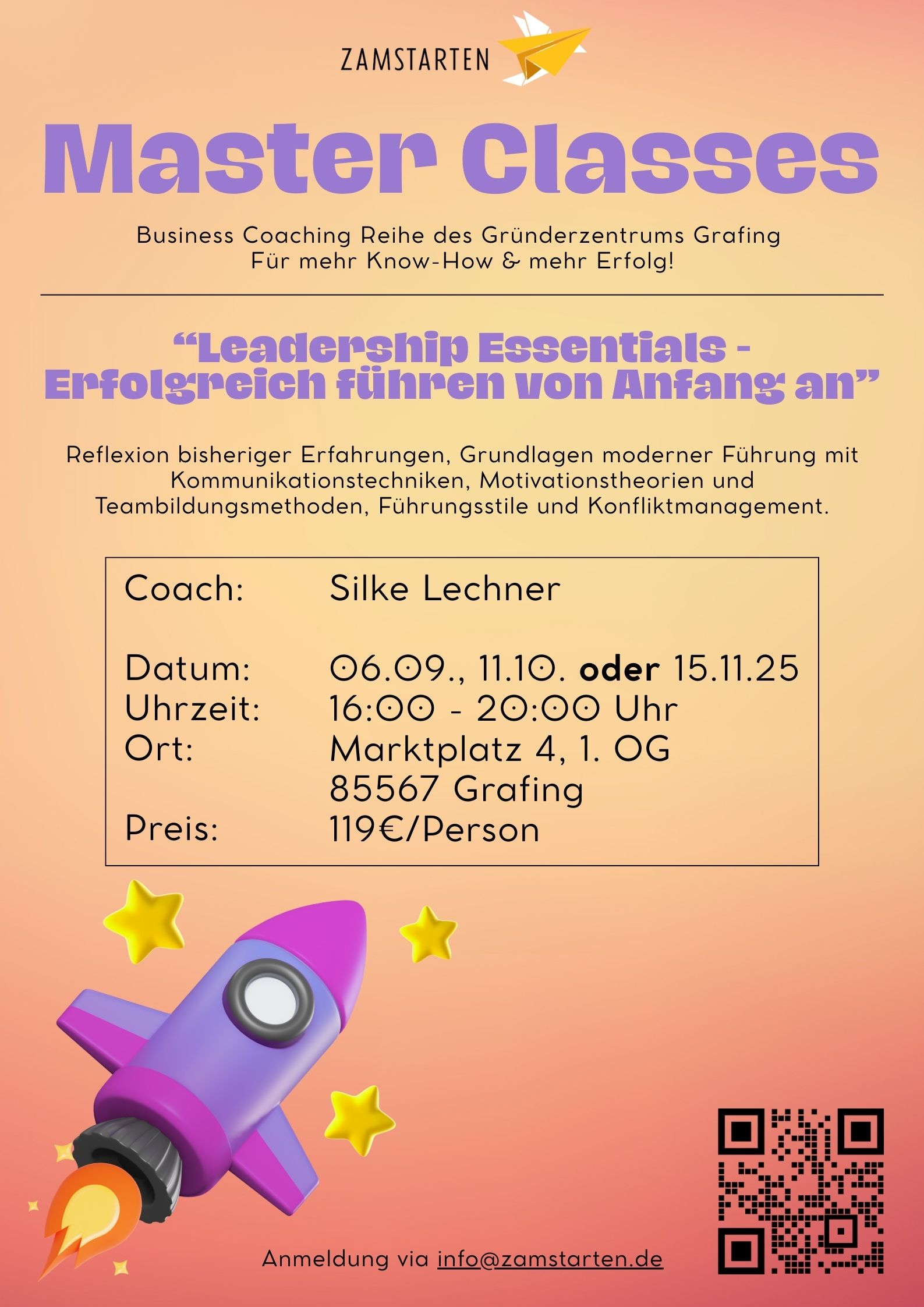 in den Master Classes des Gründerzentrums Grafing ZamStarten können Sie Ihr Know-How vertiefen und den Erfolg Ihres Business verbessern!